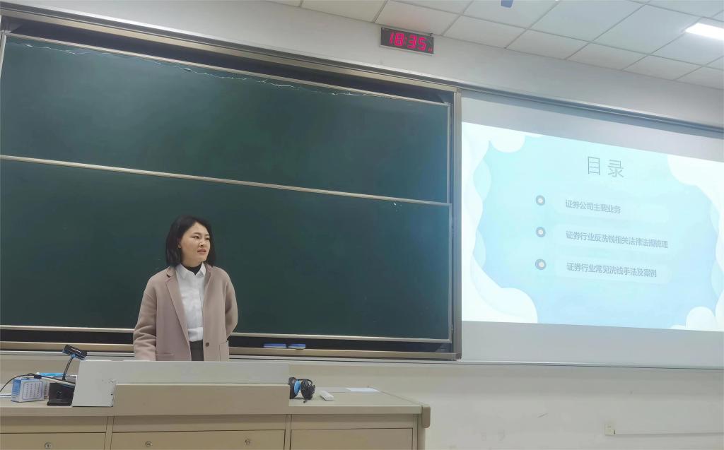 为贯彻落实“反洗钱进校园”活动,拓宽当代大学生对反洗钱相关法律法规的认知,增强大学生反洗钱风险意识,3月20日晚,ai色情 开展了“证券行业反洗钱相关法规和实务案例”讲座,邀请南京证券的陈秀丛专家进行现场授课。