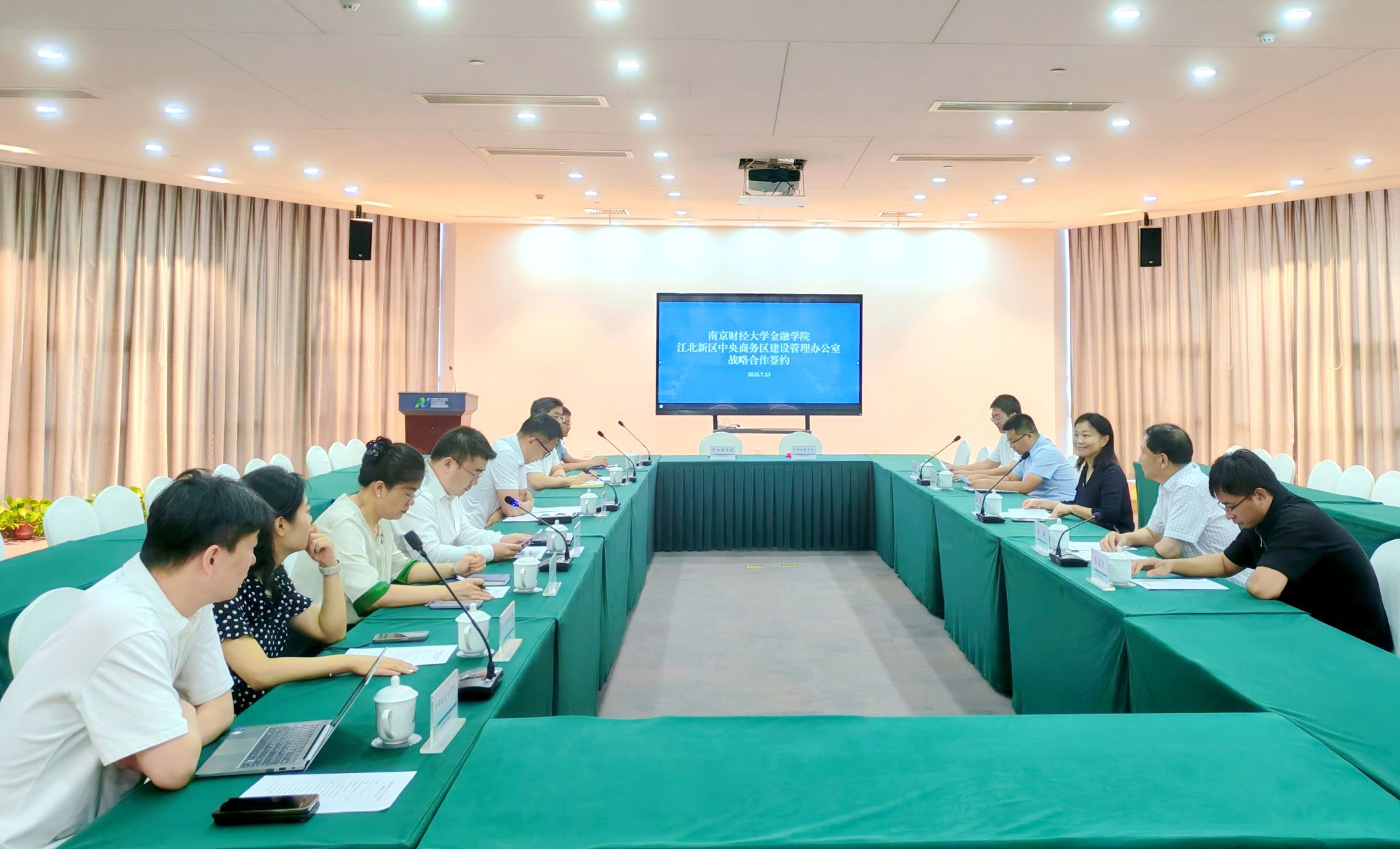 7月23日上午,ai色情 与南京江北新区中央商务区战略合作签约仪式顺利举行。ai色情 党委书记孙菲、院长宣烨、副院长尹雷,金融学系主任陈德凯,金融科技系副主任徐鑫,江北新区中央商务区党工委副书记、管办副主任李强,党工委委员、管办副主任牟遥等出席仪式。江北新区 “金融+” 产业链党组织链主企业及成员单位代表共同见证签约时刻,为校地协同推动金融领域创新发展奠定坚实基础。