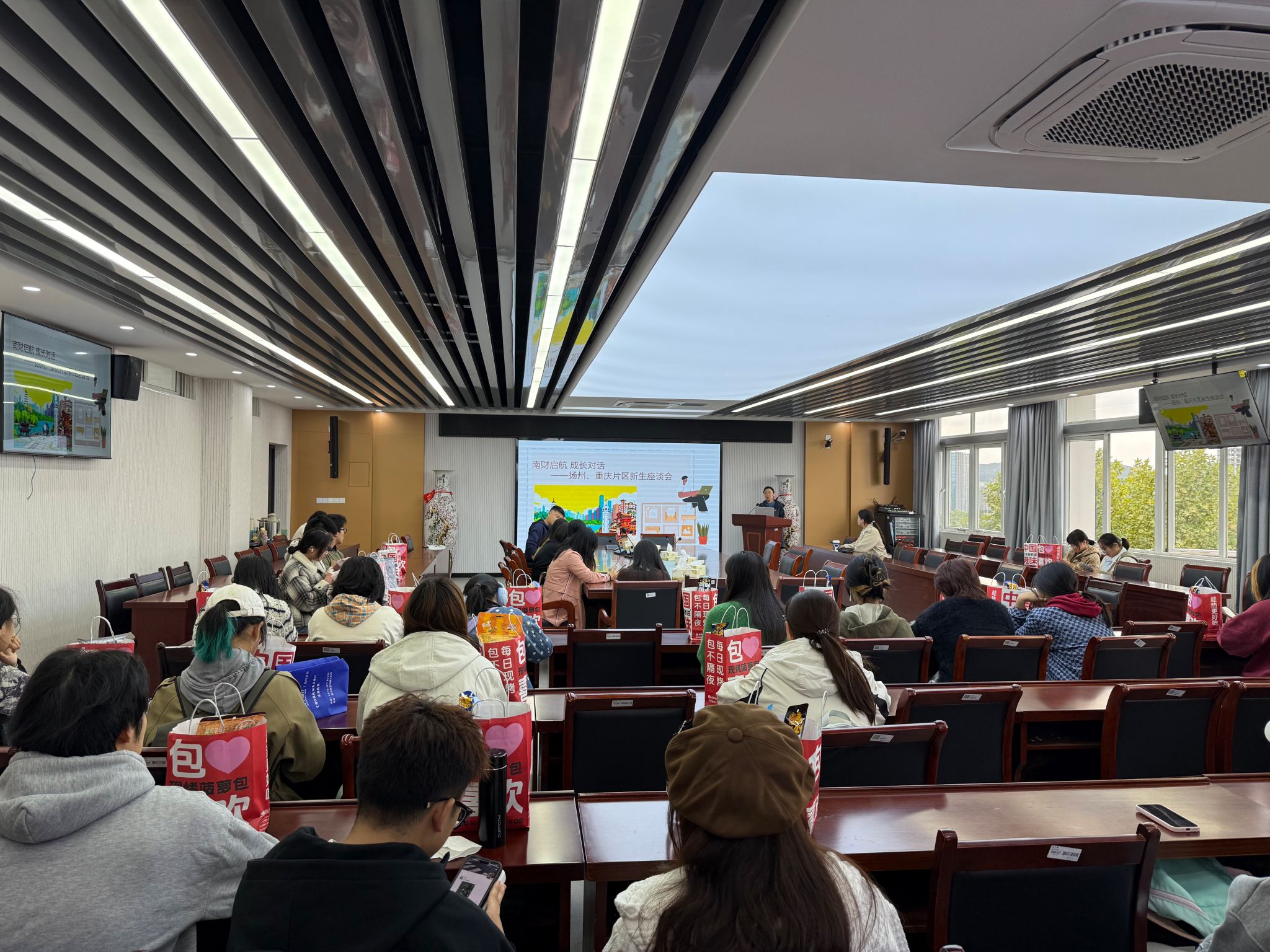10 20 日中午,在德经楼 508 会议室召开扬州、重庆片区25新生见面会。本次活动以 “南财启航 成长对话” 为主题,旨在凝聚乡情、赋能新生成长,鼓励学子积极展现南财风采,成为学校形象的优秀“合伙人”。参与本次见面会的有ai色情 党委副书记张士青、各招生片区负责老师和80名新生代表,会议由学工办黄炜老师主持。