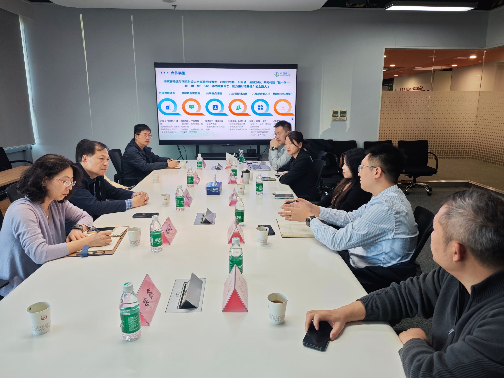 调研会上,南京移动相关负责人详细介绍了公司在算力服务、人工智能技术研发及金融行业数字化转型领域的实践成果。双方围绕共建课程体系、联合实验室、重点课题、创新挑战赛、复合型人才培育及行业应用标杆六大方向展开深入探讨。