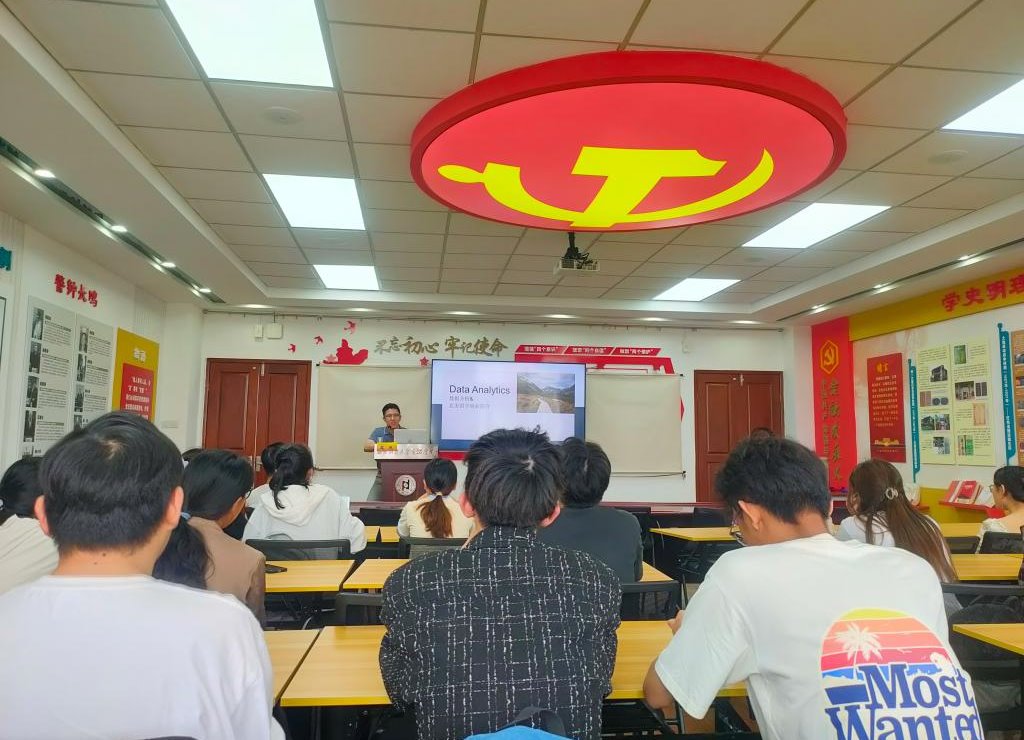 薛熙专家首先从“数据分析的概念与组成、数据成熟度的5个阶段”这两方面着手,带领同学们初步认识了数据分析的相关基础知识;随后,以通俗易懂的语言向同学们着重阐述了从事数据分析行业的5项背景要求,并引入“工伤险防范项目”这一案例让同学们体验了数据分析真实的操作过程,加深了同学们对数据分析行业的了解;最后,薛熙专家基于自身经历介绍了北美硕士申请流程以及本科生撰写个人简历的技巧。讲座结束后,薛熙专家和与会师生进行了交流。