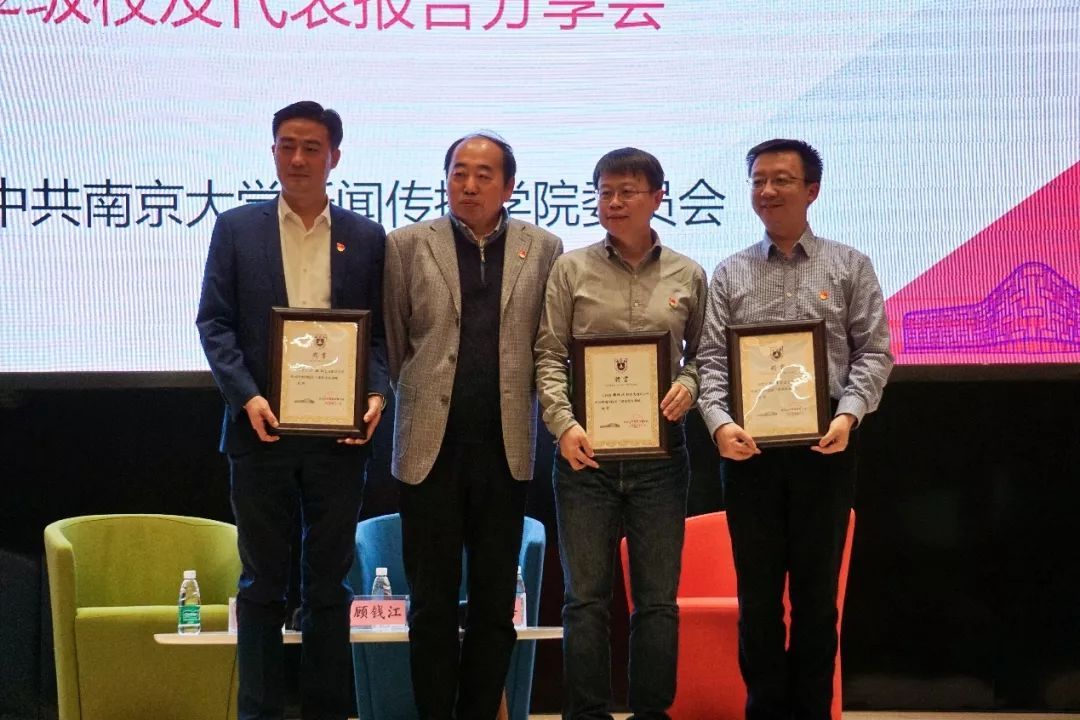 在温馨有趣的开场视频结束后,报告会正式开始。院党委书记刘源、执行院长张红军,以及全院党员、入党积极分子和学生代表来到现场,与校友交流互动。院党委副书记闻羽作为主持人,依次介绍与会嘉宾。三位主讲嘉宾分别是新华社福建分社副社长、总编辑顾钱江,羊城晚报报业集团党委委员、管委会副主任、羊城晚报副总编辑孙璇,《新华日报》社副总编辑、党委委员,中国江苏网董事长、总编辑陆峰