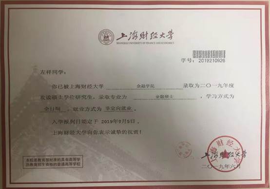 我的转专业之路比较坎坷,高考虽然有幸考取ai色情 ,但是没有录取到自己最喜欢的专业,入学后又因0.02个基点之差转专业失败。幸运的是我始终没有放弃对金融专业的偏爱和执着,在见到学校金融二学历的招生简章后我毫不犹豫的报了名。我的初衷是想通过对金融知识的系统性学习,将来进入金融领域工作,或者报考金融类研究生。在大三下学期我开始为报考上海财经大学金融硕士做准备,我很快发现绝大部分专业知识都在二学历的课堂学习过。作为一名跨考生,虽然整个备考过程比较艰辛,但因为之前在二学历课堂上打下了牢固的专业课,少了很多其他跨考生的焦虑和不安。我最终在报考上海财经大学金融硕士的1600多名考生中胜出,以初试第23名,复试第7名,综合第13名的好成绩成功录取。