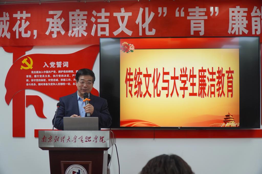 叶教授首先阐述了传统文化与大学生廉洁教育的关系。他认为中华优秀传统文化已为大学生的廉洁教育提供了丰富的理论和实践资源,传统文化以其简朴的故事情节、醇厚的文学诗词启迪、调动了大学生的自主性、自觉性,让大学生在传统文化的熏陶下,树立“廉洁”观念,约束自己行为。传统文化提高了廉洁教育的针对性、实效性和吸引力、感染力,相对于盲目“说教”、枯涩高调的宣传有着事半功倍的教育效果。紧接着叶教授详述了传统文化对当代大学生廉洁教育的理论价值和社会价值。他表示应充分利用学科教学、主题活动、课外阅读、社会实践、家庭教育渗透传统文化,让大学生在丰富多彩的活动中得到体验,充分发挥传统文化的教育、示范、熏陶和导向作用,通过大力弘扬传统文化,培养正直、节俭、清廉和有责任心的当代青年。在大学生踏入社会前接受廉洁教育是具有前瞻性和战略性的考虑。要建立廉洁的社会,就必须致力于发展崇尚廉洁的校园文化,以几千年传统文化为背景对大学生进行廉洁教育,对于促进全社会的廉洁教育,增强全社会的廉洁意识,净化社会风气都具有重大的而深远的价值。最后叶教授认为从学校到社会应重视全民的廉洁教育,提高全社会的文明程度,大力营造以廉为荣、以贪为耻的社会氛围,认真结合传统文化,采取有力措施,让廉洁教育在全社会生根发芽,茁壮成长。