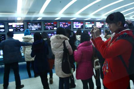 2011年12月19日,10级广电班全体同学在广电系主任周凯老师的带领之下,参观了江苏省广播电视台。当天下午,同学们不但能观摩到江苏广播电视台的直播厅现场制作节目、江苏卫视皇牌栏目《非诚勿扰》的现场录像,还有非线性编辑工作室的制作和直播监控室等等。同学们在其中都对电视制作的工作十分有兴趣,还不时向在场介绍的工作人员提出问题,而工作人员更是细心回答。这次活动不但增加了我们对广电专业的了解,还增加了同学们对广电专业的兴趣,同学们都表示获益良多,还希望以后有更多类似的参观活动。