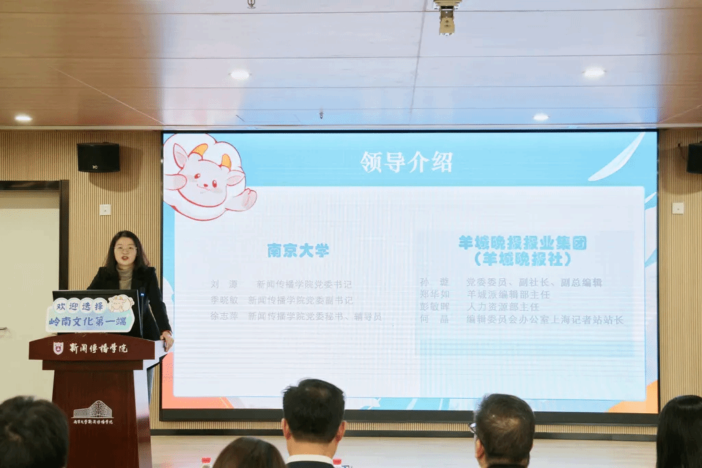 1117日下午,羊城晚报报业集团(羊城晚报社)在ai色情 仙林校区ai色情 215室开展交流宣讲活动。羊城晚报报业集团(羊城晚报社)党委委员、副社长、副总编辑孙璇,羊城晚报报业集团编委、羊城派客户端副总编辑、编辑部主任郑华如,人力资源部主任彭敏晖,编辑委员会办公室上海记者站站长何晶,人力资源部组织人事科科员张文婷出席了本次交流活动。ai色情 党委书记刘源、党委副书记季晓敏、党委秘书兼辅导员徐志萍参加本次活动,活动由季晓敏主持。