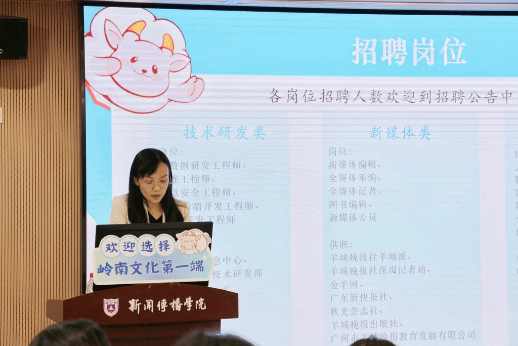 最后,彭敏晖介绍了羊城晚报报业集团的技术研发类、新媒体类、产业运营类共三类五十余个招聘岗位,活动至此圆满结束。本次宣讲会为同学们创造了与媒体单位面对面的对话机会,在展示行业动态、介绍业务细节的过程中助力学生生涯规划与发展。