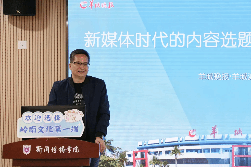 郑华如还向同学们介绍了羊城晚报社主创的具体产品案例,如报纸四连张、移动端长卷、水墨动画、微纪录片、互动手游、合成主播等。他还以“骑单车的人”为喻,剖析了吸引用户的新媒体标题的特征。