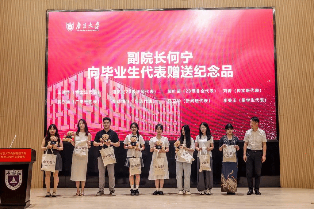 方寸之间,盛满千言万语;轻礼之上,寄托万里情深。学院为每位毕业生送去专属定制纪念品,祝贺同学们顺利完成学业、踏上人生新征程,ai色情 副院长、江苏省广播电视总台副台长、集团副总经理何宁向毕业生代表赠送了这份礼物。