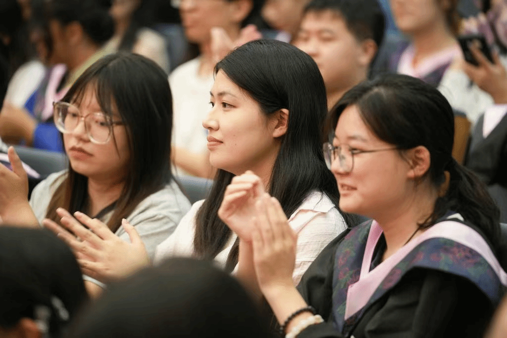 “你今天过得跟别人一样吗?”“你今天有被别人的选择影响吗?”“你今天是因为别人而快乐吗?”期待同学们能在知识之外,用大学的精神回答问题,也重思何为人文学科、人文精神。以老人与海和小王子与玫瑰花的故事为例,她温情期待同学们能选择“心之所动”的方向,无论是在惊心动魄的成就感中,还是在普普通通的成就感中,都要找寻到努力过后的快乐和满足,在任何时代都熠熠发光。
