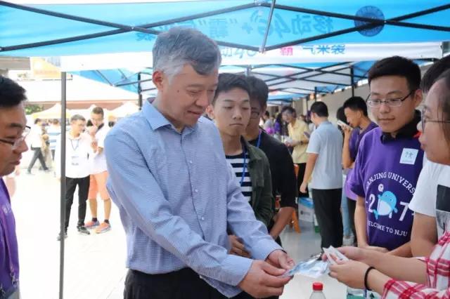 陈骏校长前往展台看望新生和志愿者