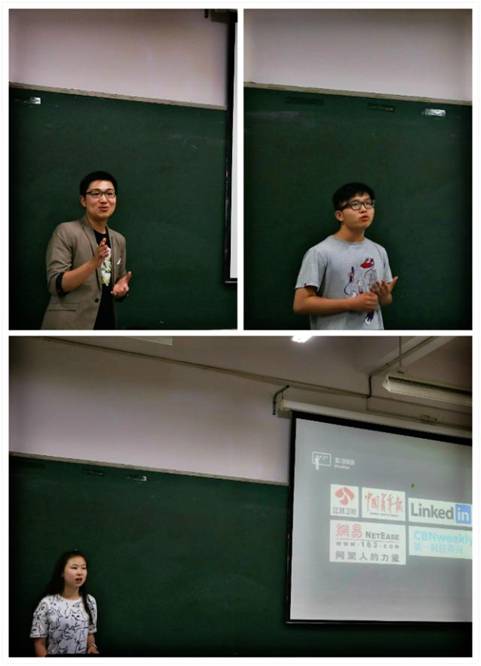 广电班的孙靖垚学长和周晓洙分别实习于央视和江苏卫视,在他们的实习心得中,勤学是十分重要的一点。孙靖垚说,学习新闻采写、新闻摄影等新闻专业技能,是工作中的一大收获;适应新闻行业工作节奏对实习生来说至关重要。周晓洙觉得向老师求教、向周围同学学习是实习中进步的要点。同时,传媒行业所必须的细心严谨态度也是两人共同的心得。周晓洙向大家展示了她对江苏卫视实习工作的热爱,在实习期间她收获了职业技能,也收获愉快的经历。