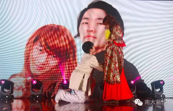 晚会现场弥漫着粉红色的浪漫气息。新传“院对”闪亮登场,默契答题赢得神秘奖品;本科生情侣组合倾情演唱,温暖牵手,演绎初恋般的甜蜜,闲适旋律诉说爱之密语;更有师生携手合作《想把我唱给你听》,张静老师专业歌喉彰显迷人韵味,十大歌手于济州深情献唱温暖中透露着热情。