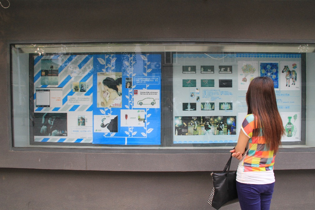 2010级广告班的优秀学生作品在鼓楼校区南园宣传栏展出。