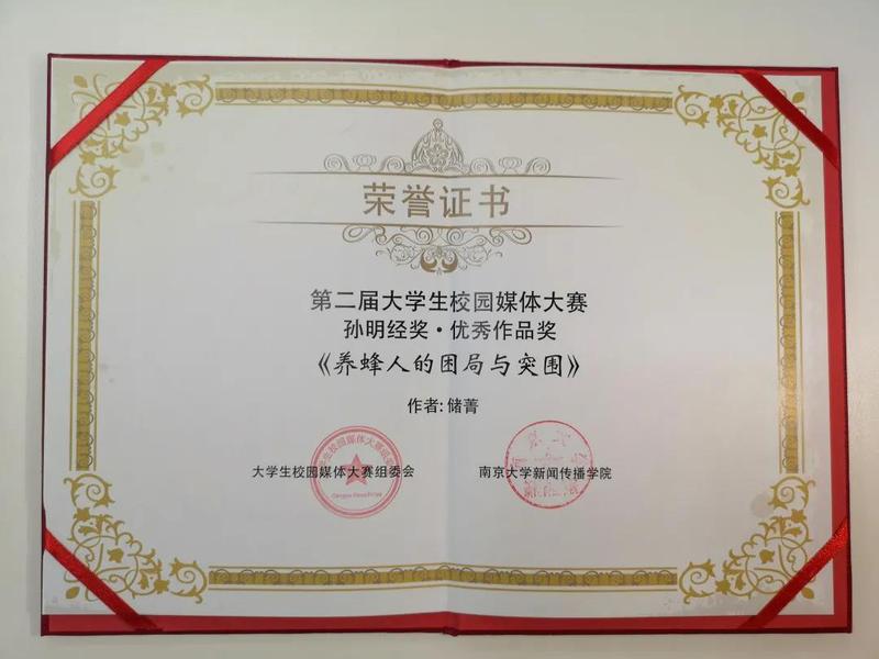 外国语学院16级西班牙语系本科生储菁报道《养蜂人的困局与突围》荣获深度报道类奖项。