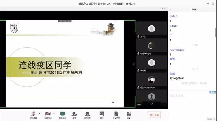 2月下旬,学院各个年级分别组织开展同心战“疫”·“新”火相传线上主题班会,会议介绍抗击新冠肺炎现状、连线慰问疫区同学、学习院友一线抗“疫”事迹、传递海外友好高校支持、学习习近平总书记重要指示、介绍抗疫期间学校相关政策。