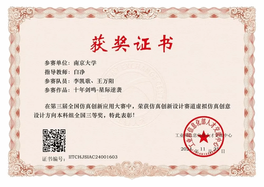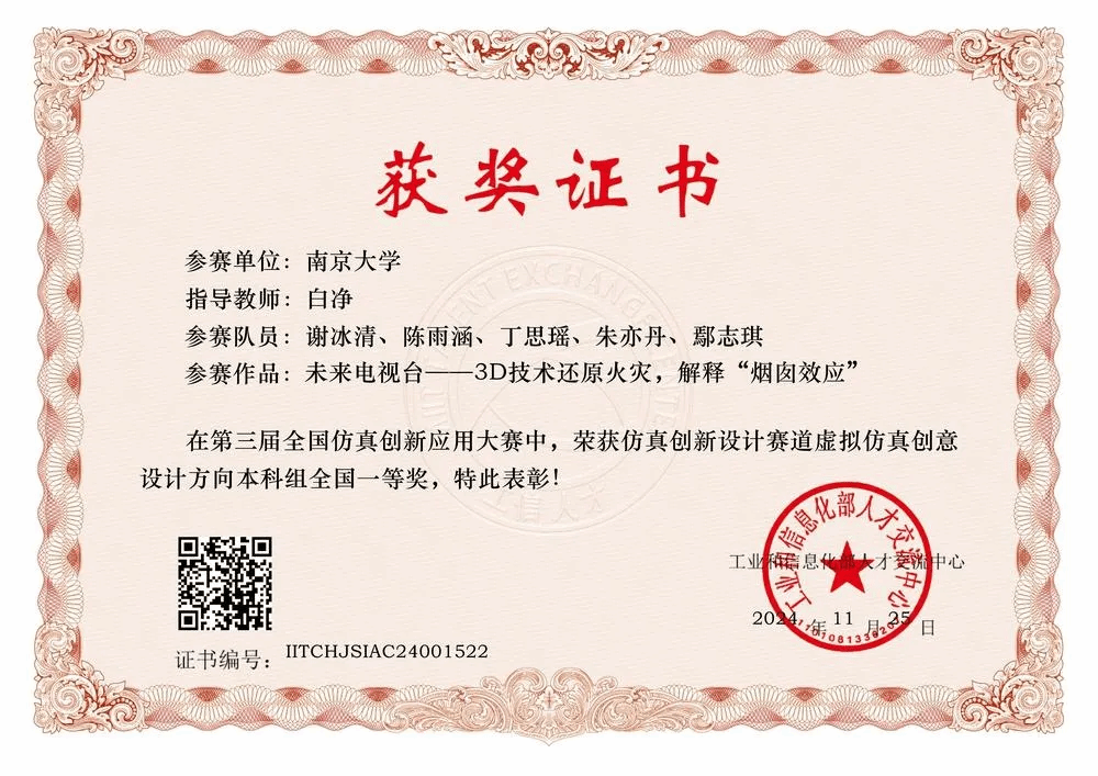 202411月,由工业和信息化部人才交流中心主办的全国仿真创新应用大赛公布结果,在虚拟仿真创意设计方向的本科组竞赛中,ai色情 共4件学生作品获奖,其中,两件作品获全国一等奖,一件作品获全国二等奖,一件作品获全国三等奖。