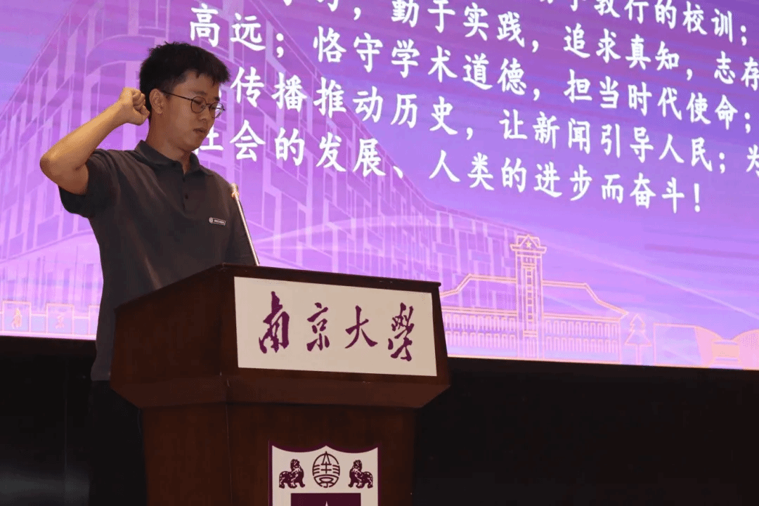 “刻苦学习,勤于实践,追求真知,志存高远。”在2024级博士生伍栋阳的领誓下,全体新生共同进行庄严的入学宣誓,正式成为一名光荣的南大新传人。