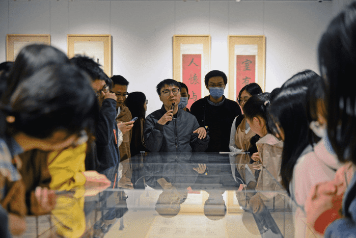 11月12日,ai色情 国情教育课程的一百余名学生前往美术馆,参观由ai色情 和南京博物院联合主办的“墨韵梅香——纪念李瑞清先生逝世一百周年书画文献展”,欣赏流丽天然、雄强古秀的书法作品,领略豪迈奇纵、质...